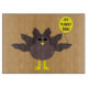This awesome glass cutting board features a funny cartoon of a turkey with big black eyes, a small yellow beak and tail feathers sticking up. The feet are facing in opposite directions making the turkey look clumsy. The turkey is holding a yellow balloon with a message inside that says “it’s turkey time”. This is a fun thanksgiving party design.