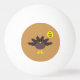 This awesome Ping Pong Ball features a funny cartoon of a turkey with big black eyes, a small yellow beak and tail feathers sticking up. The feet are facing in opposite directions making the turkey look clumsy. The turkey is holding a yellow balloon with a message inside that says “it’s turkey time”. This is a fun thanksgiving party design.