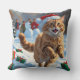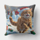 Turkish Angora Cat Running in Snow Christmas Hat Throw Pillow