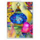 Colorful bright vivid watercolor painting original art of mosaic style Turkish lamps. Inspired by Istanbul Street Market these lamps are famously colorful and unique.