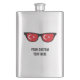 The product is a good size and came exactly as it was pictured. The lid is not attached to the flask, which could be dangerous on drunken nights... The print came out surprisingly well and looks very sharp. Would definitely recommend.