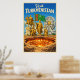 Embark on a visual journey to one of the most mesmerizing natural wonders of the world with our stunning Turkmenistan Vintage Travel Poster featuring the iconic Darvaza Gas Crater!