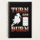 Cool barrel racing design for barrel racer or cowgirl who loves riding her horse fast around barrels at a rodeo. Turn and burn novelty design features cool quote and cowgirl on horse silhouette.
