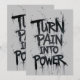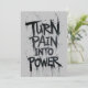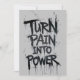Turn pain into power. Transform your suffering into strength. Expressive human words in splash graphic frame.