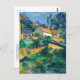 A postcard with the fine art painting by the French Post-Impressionist artist Paul Cézanne (1839-1906), Turning Road at Montgeroult (1898). A painting depicting a lush landscape on a hillside with houses in a small French village.