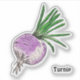 A reproduction of the acrylic turnip painting by Amanda White with its name as a separate sticker