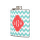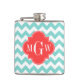 Turq Aqua Wht Chevron Coral Quatrefoil 3 Monogram Hip Flask