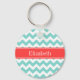 Turq / Aqua Wht Chevron Coral Red Name Monogram Keychain