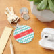 Turquoise / Aqua and White Chevron ZigZag Pattern, Coral Red Ribbon Name  Monogram Label