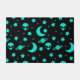 This vibrant alien and space pattern features glowing turquoise elements against a deep black background, creating a bold and otherworldly aesthetic. The seamless design includes classic extraterrestrial heads, crescent moons, stars, Saturn-like planets, and radiant starbursts, all arranged in a playful cosmic layout. The bright teal accents pop dramatically against the dark backdrop, giving the pattern a futuristic and sci-fi inspired feel. Perfect for fans of UFO lore, outer space themes, and celestial motifs, this repeating design captures the mystery and wonder of the universe in a striking, modern style.