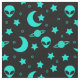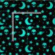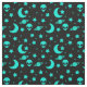 Turquoise Alien Pattern with Stars and Moons Fabric