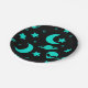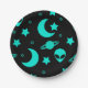 Turquoise Alien Pattern with Stars and Moons Paper Plate