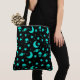 Turquoise Alien Pattern with Stars and Moons Tote Bag