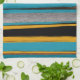 Turquoise And Black - Abstract Art Stripes Kitchen Towel