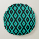 Turquoise and black diamond pattern round pillow