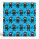 Kawaii ninja bunnies pattern in blue / turquoise and black. The bunny is wearing a black ninja suit with a star knife.