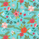 Turquoise and Coral Floral Pattern Fabric