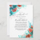 Turquoise and coral watercolor roses and tropical foliage long distance virtual wedding invitation with trendy handwriting typography designed to be quickly and easily customized.