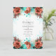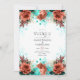 Turquoise and Coral Rustic Floral Wedding Invitation
