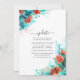 Turquoise and Coral Rustic Floral Wedding Update Invitation