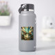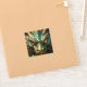 A sticker with a cool close up illustration of a turquoise and metallic gold dragon face with realistic eyes.