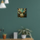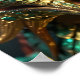 A poster with a cool close up illustration of a turquoise and metallic gold dragon face with realistic eyes. Fantasy art realism dragon art.