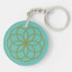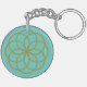 Turquoise and green flower design double-sided acrylic keychain. Makes a great gift.