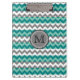 Turquoise and Grey Chevron Zigzag Monogram Clipboard