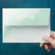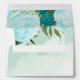 Beautiful wedding envelope featuring turquoise and light blue flowers and green leaves