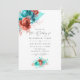 Turquoise and Living Coral Floral Wedding Invitation