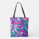 Blue, purple and pink waves and bubbles fluid art personalized tote bag.