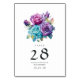 Trendy turquoise and purple floral wedding table number card. Ideal for any given theme or garden wedding.
