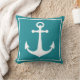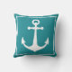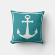 Turquoise and White Anchor Nautical Boat Beach Throw Pillow