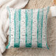 A beautiful scene of white and turquoise birch trees as a background on these throw pillows