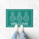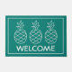 This cute doormat features three classic pineapples in white on a background of solid turquoise. Personalize with your choice of special message.