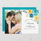 Turquoise and yellow - teal and lemon floral wedding thank you photo cards with accents of coral featuring aquarelle flowers and foliage.