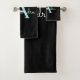 Noir et Turquoise Aqua Bleu Simple Script Monogramme Nom Serviette de bain. Cela rend le cadeau parfait pour 16 ans, mariage, douche nuptiale, anniversaire, baby shower ou bachelorette pour quelqu'un qui aime le luxe glam et les styles chic.