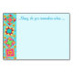 Cusomizable quilt RSVP or note card to add your own words or for any occasion. Quilt art based on original art features favourite patchwork quilt blocks plus unique blocks in vibrant and dynamic colours of orange, yellow, pink, turquoise, and lime green on a turquoise aqua blue background for a beautiful colour palette.