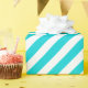 A bright turquoise aqua blue holiday wrapping paper featuring turquoise blue wide stripes on the diagonal.