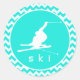 Turquoise, Aqua Colour Chevron; Snow Ski Classic Round Sticker