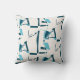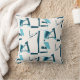 Turquoise Aqua Twirling Lines Print on Off-White Throw Pillow