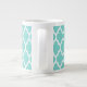 Turquoise Aqua Wht Moroccan Quatrefoil Pattern #4 Large Coffee Mug