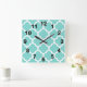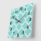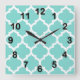 Turquoise Aqua Wht Moroccan Quatrefoil Pattern #5 Square Wall Clock