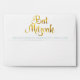 A graphic faux gold foil tree with sparkly turquoise, teal, purple and blue Star of David and dot “leaves” on a white background is on the front. Open up this envelope and you’ll find a graphic visual of graphic visual of a tiny, light turquoise blue Star of David pattern overlaying a teal turquoise blue background. The outside back flap boasts a faux gold foil script typography “Bat Mitzvah” and a turquoise, modern san serif typeface for the custom, pre-addressed, return address. Celebrate this milestone of your favourite Bat Mitzvah whenever you use this stunningly stylish and modern personalized envelope. Matching and coordinating invites, thank you notes, table cards, stickers and other Bat Mitzvah goodies are also available in this trendy and special collection.