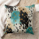 Turquoise Black Cream Gold Western Cowhide Throw Pillow