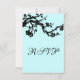 Wedding RSVP cards in elegant turquoise and black with simple and stylish floral design. Customizable with your wedding details, available in matching stamps, stickers, magnets and cards.