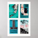 Turquoise & Black Matchbox Labels Grid Print, Vintage Ephemera Poster, International Collection, Midcentury Style, turquoise wall art 1