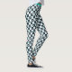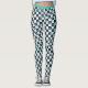 Turquoise black and white stars and squares pattern fitness gym and yoga leggings.