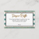 Voici une option sophistiquée pour la planification de votre baby shower de tirage de couches. Ce design a été embelli avec de larges bandes blanches et turquoises, faux confettis or, et faux texte d'en-tête métallique parties scintillant or. Derrière un badge blanc, j'ai couvert l'arrière - plan d'un motif rayé audacieux. Vous pouvez modifier la partie turquoise en n'importe quelle couleur. Sur le devant, un en-tête gras indique "Déchirer" dans une police de script élégante, que j'ai ajouté comme une superposition graphique. Le texte a été embelli dans le traitement graphique de la parties scintillant d'or. Ensuite, vous avez un message modifiable, "Venez porter des couches dans des paquets de n'importe quelle taille, et votre nom sera entré pour une chance de gagner un prix!" puis une ligne pour les noms des participants à écrire. Sur le dos, j'ai ajouté plus de bandes et le faux graphisme de confettis d'or. N'hésitez pas à communiquer avec nous si vous avez besoin d'aide. // 89 // Conçu par Melody Watson pour Paper Muserie.