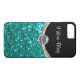 Stylish glitter smartphone case with pretty printed turquoise simulated sparkling glitter, diamond jewel bling and silver accents, all digitally printed on the cellphone cover to give your mobile phone some glitz and glam in a styled way. Designed for ladies or girls who want a fancy cover without the fancy cost.